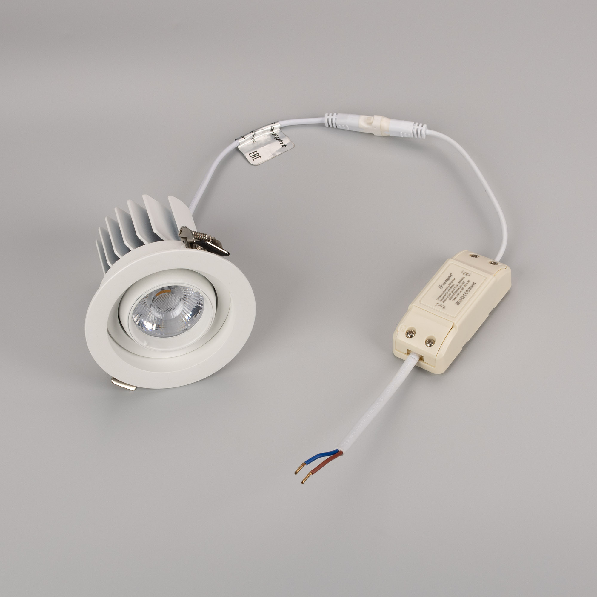 Встраиваемый карданный поворотный светильник с высоким индексом цветопередачи CRI>92 предназначен для создания качественного освещения. За основу поворотного механизма светильника взят принцип кардана – подвижное соединение двух колец, вложенных одно в другое. Световой модуль вращается вокруг своей оси на 360 градусов и отклоняется от горизонта на 30 градусов, что позволяет с лёгкостью регулировать направление пучка света и его концентрацию на определенной зоне. Особая конфигурация корпуса из алюминия оригинально смотрится в интерьере и позволяет эффективно отводить тепло. Светильник с углом рассеивания 20 градусов отлично подходит как для локальной акцентной подсветки витрин, прилавков магазинов, бутиков и стендов выставочных залов, так и для общего освещения. Легко устанавливается с помощью пружин в монтажное отверстие потолка. В комплекте поставляется драйвер, что позволяет безопасно и быстро подключать светильник напрямую к сети переменного тока 230 В.